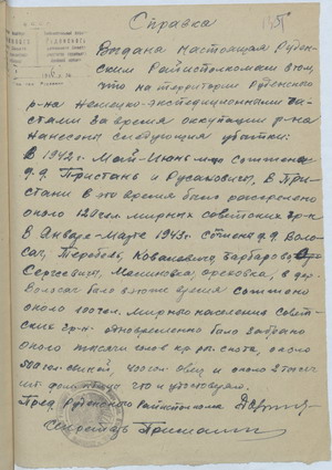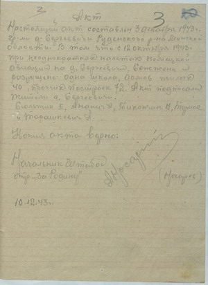 Из сообщения БШПД в ЦК ВКП(б) о преступлениях, совершенных немецкими оккупантами на территории Беларуси2