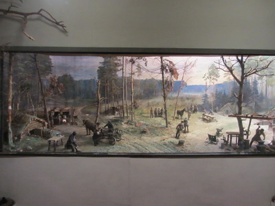Панорама быта в партизанском лагере из музея партизанской славы в деревне Горелец