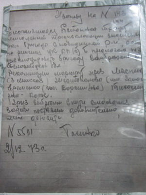 На фото – телеграмма заместителя начальника белорусского штаба партизанского движения И.П.Ганенко о необходимости передислокации (из экспозиции музея боевой славы в Озеричинской СШ)