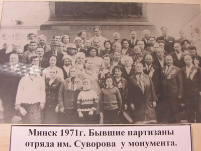На фото – партизаны отряда имени Суворова. Фото находится в музее боевой славы Озеричинской СШ. Организаторы этого музея – участник Великой Отечественной войны С.Н.Иванов, его жена – Людмила Дмитриевна и дочь – Наталья Сергеевна
