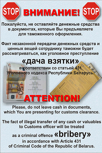 С учетом внесенных изменений, в случае оставления физическими лицами, пересекающими Государственную границу Республики Беларусь, денежных средств в документах, предъявляемых для проверки, а также совершения ими действий, направленных на подстрекательство должностных лиц таможенных органов к нарушению законодательства, сотрудники республиканских пунктов таможенного оформления, при наличии достаточных поводов и оснований, будут начинать в отношении правонарушителей административный процесс по признакам состава правонарушения, предусмотренного статьей 23.32 Кодекса Республики Беларусь об административных правонарушениях. Теперь за подобную «забывчивость» правонарушители будут подвергаться административному взысканию в виде штрафа в размере до 50 базовых величин, а при наличии признака повторности – до 100 базовых величин.