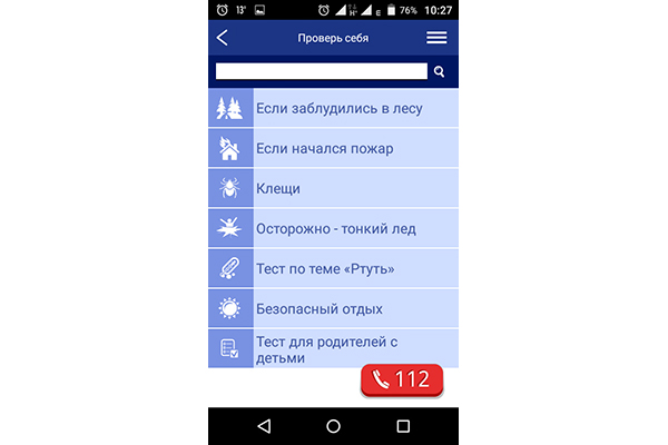 – У раздзел «Што рабіць?» мы змясцілі каля шасцідзесяці тэм разнастайнага побытавага характару, з якімі могуць сутыкнуцца людзі, – працягвае Віталь Навіцкі. – Сярод іх ёсць як традыцыйныя (што рабіць пры пажары ў доме?), так і экзатычныя, кшталту алгарытму, як зняць кальцо з пальца. Інструкцыя дзеянняў выкладзена ў 5 кроках. Раздзел «Энцыклапедыя» змяшчае тыя ж веды, проста яны выкладзеныя больш разгорнута. Ёсць і спецыяльныя тэсты па бяспецы, з дапамогай якіх можна праверыць свае веды. Тэсты пастаянна абнаўляюцца – так, напярэдадні новага навучальнага года з’явіцца новы. А калі вы аўтарызуецеся праз сацыяльную сетку, то зможаце паўдзельнічаць у імправізаваным рэйтынгу сярод карыстальнікаў праграмы.